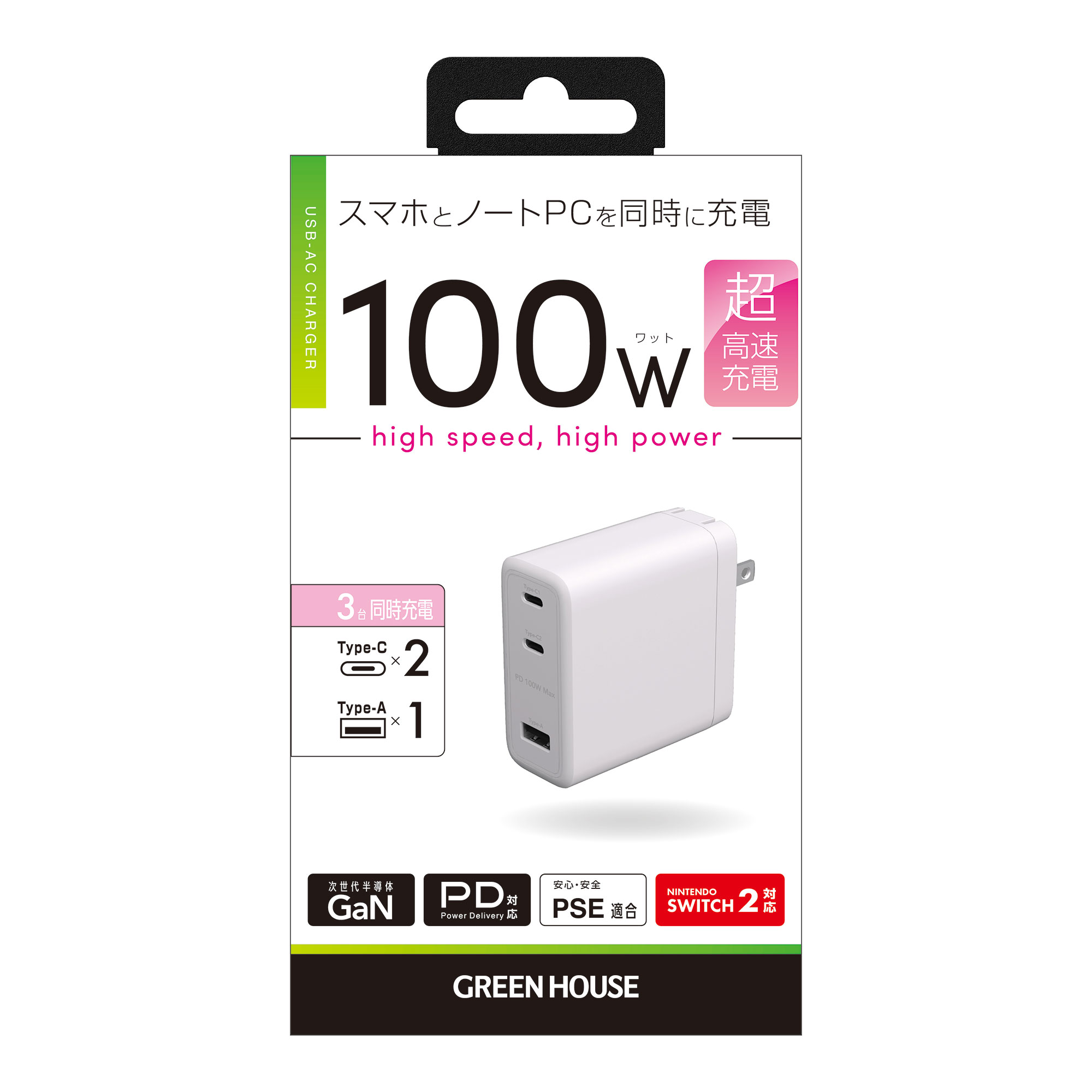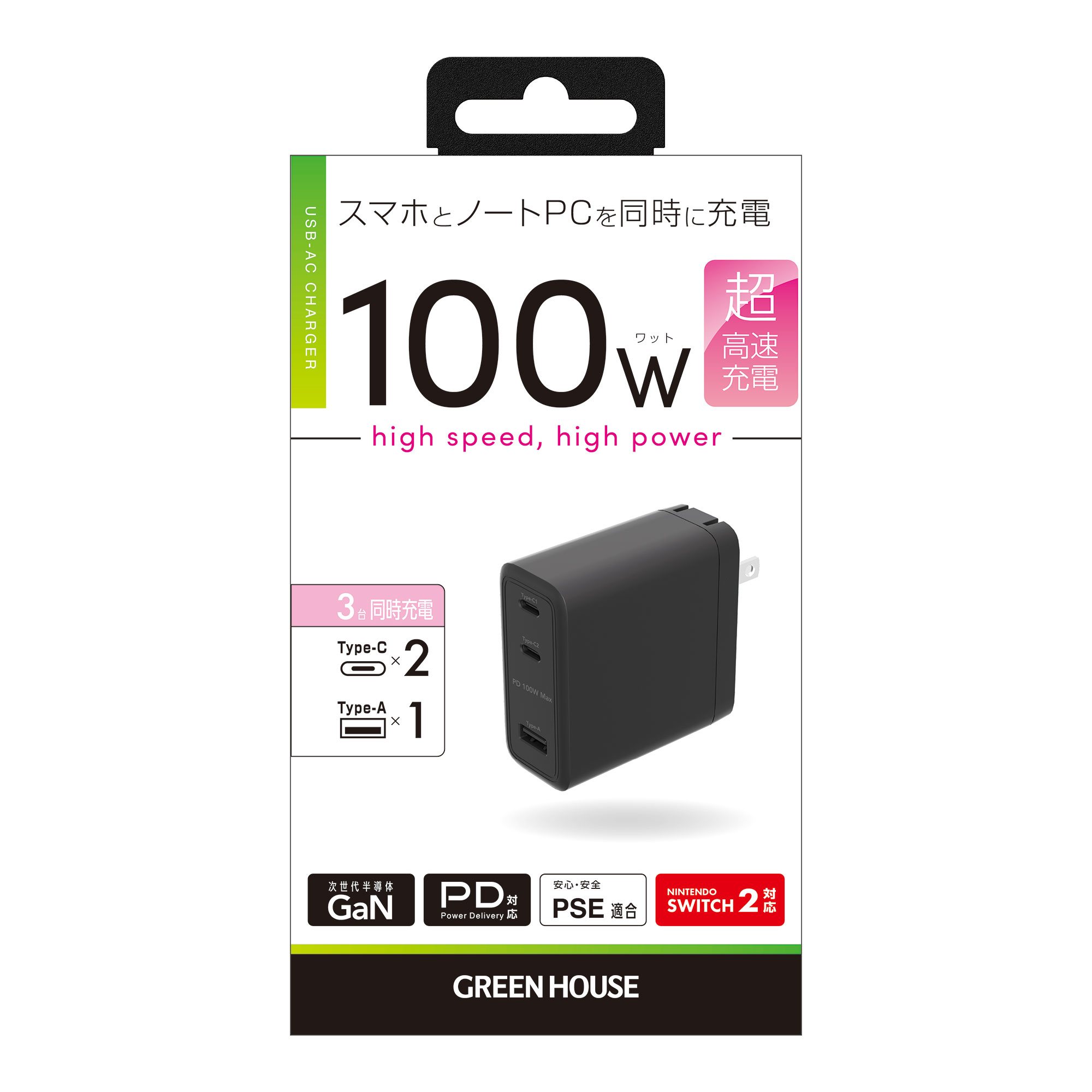 USB Type-C単体での使用なら、PD100Wの高出力による超高速充電が可能、ノートパソコンへの電源供給にも対応しています。