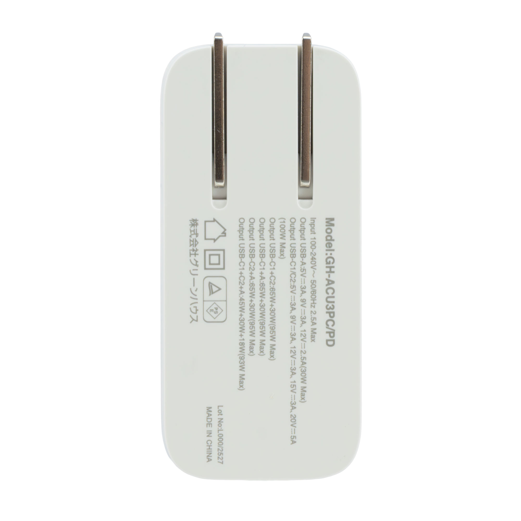 3ポート使用時は、PD45W(USB Type-C)+ PD30W(USB Type-C)と18WのUSB Type-A×1ポートを持ち、