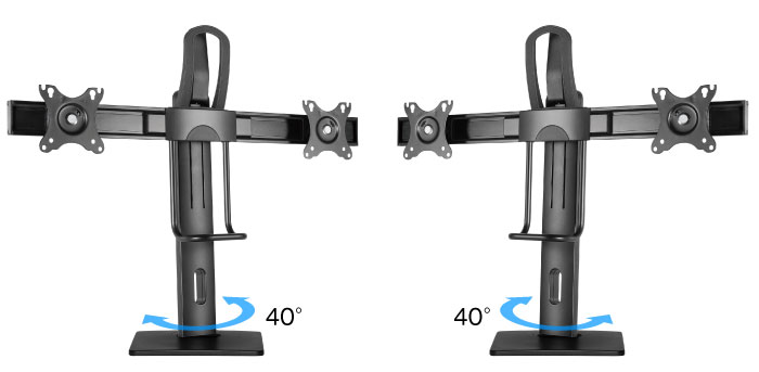 ディスプレイを昇降させる機能を持ち、上下左右の首振り調整が可能です。
