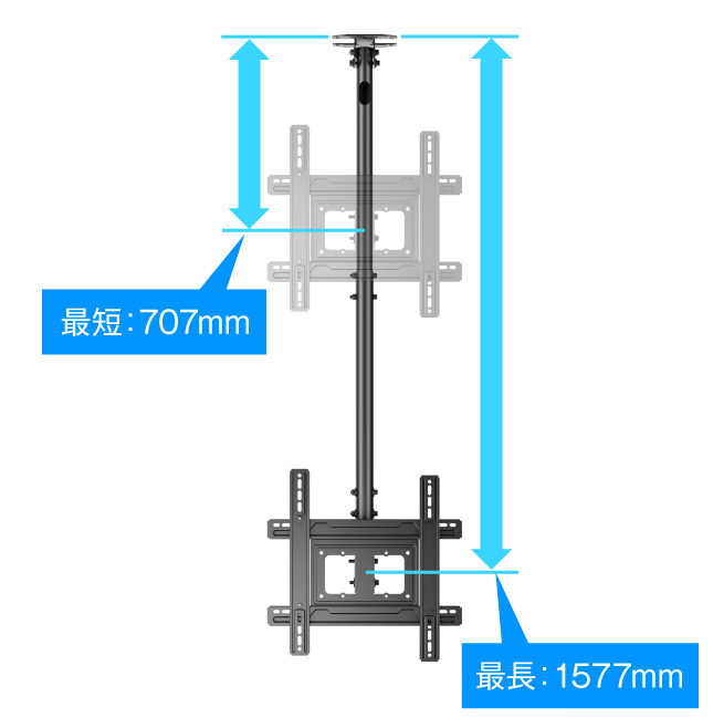 • 天井からの距離は707~1577 mmの範囲で細かく設定できる