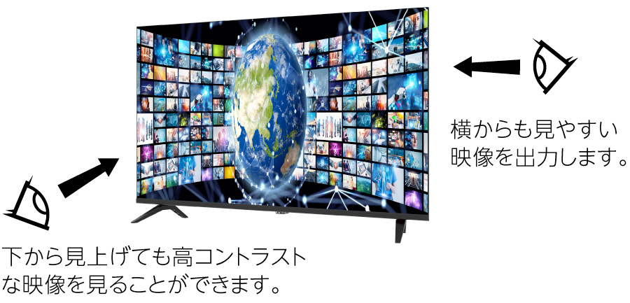 上下左右178°の広い視野角度を持ち、角度による色やコントラストの変化が少なく、くっきりと見易い映像を実現します。