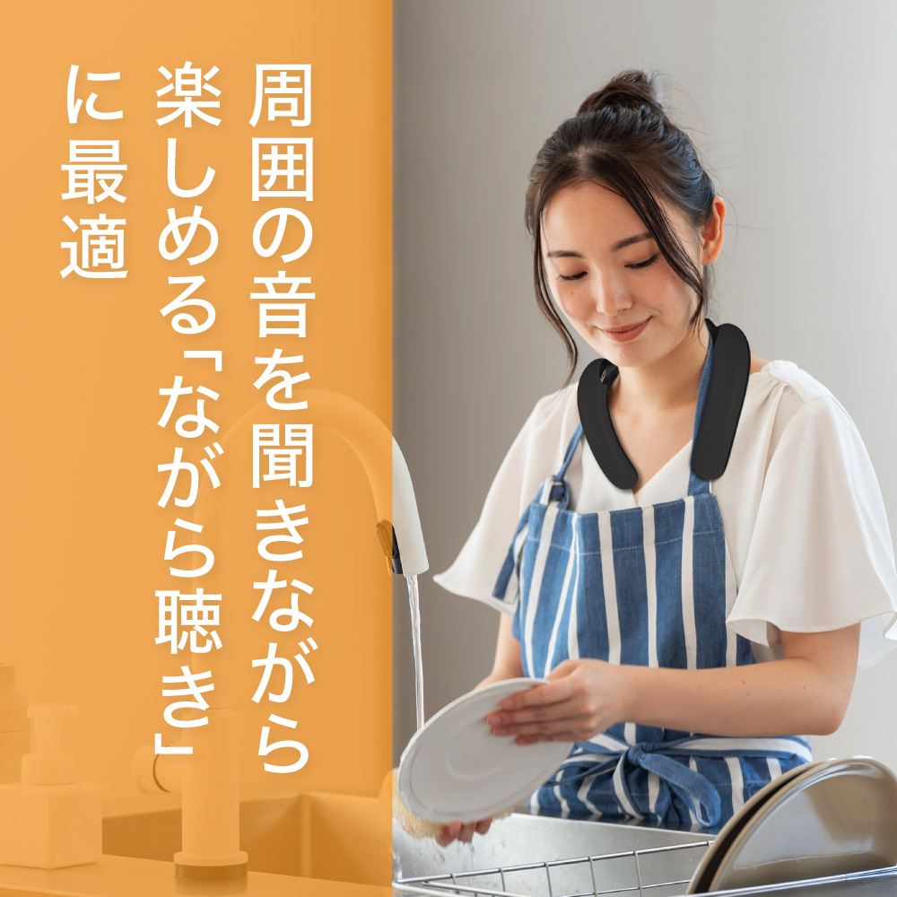 音楽やラジオなどを楽しみながらも、家族の呼びかけやインターホンの音など周囲の状況を把握でき、在宅ワークや家事、育児などにもぴったり。