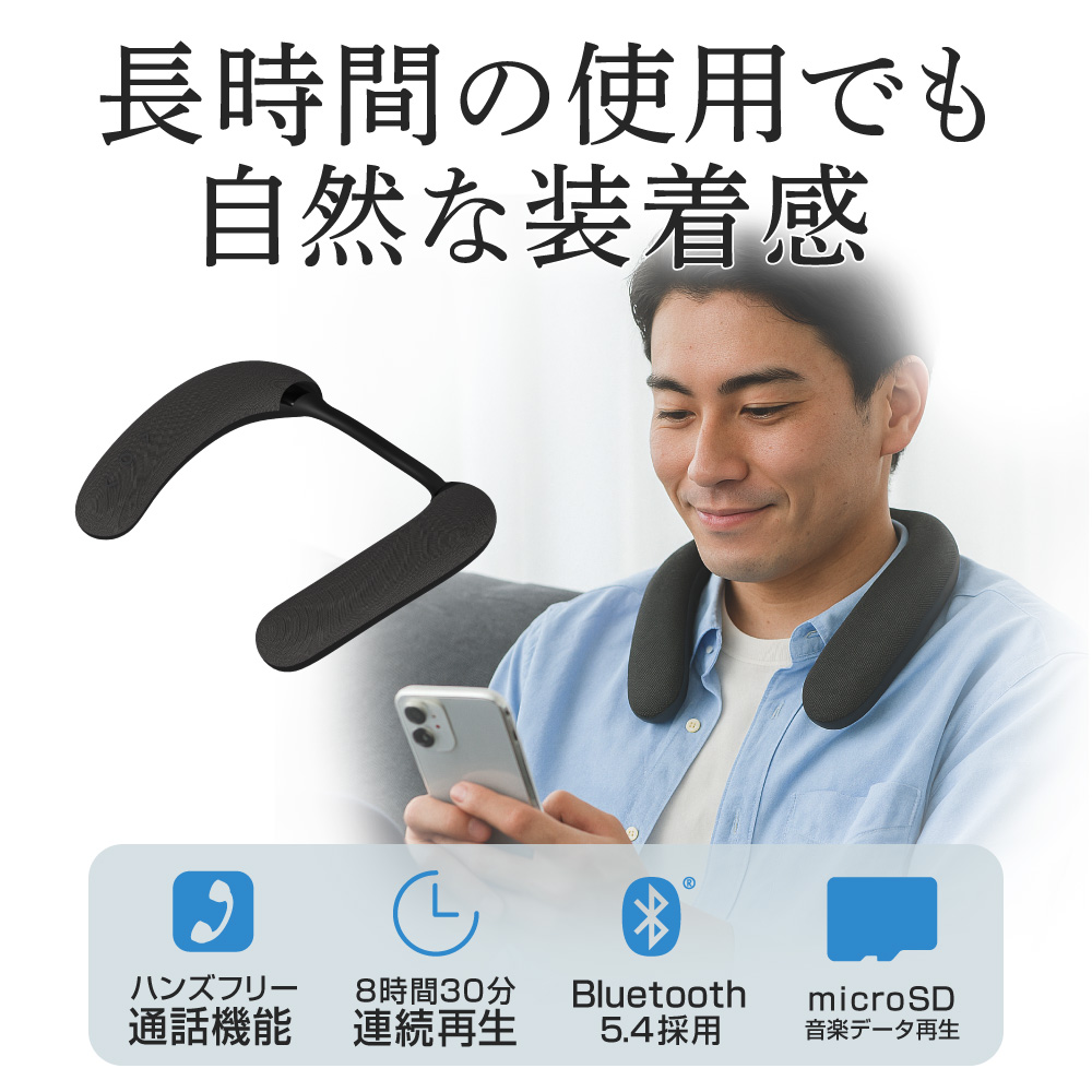 ワイヤレスネックスピーカーは、首にかけることで耳を塞がず周囲の音も聞こえる「ながら聴き」に最適な設計です。