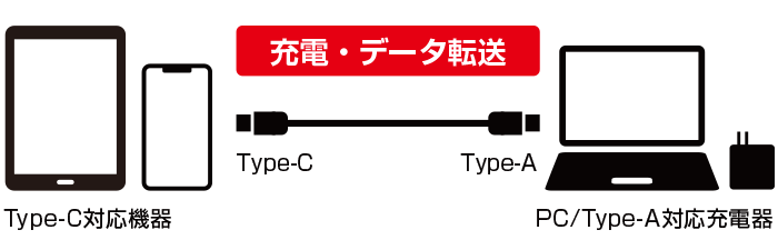 USB Type-Cコネクタによる充電・データ転送に対応したスマートフォンやタブレット、モバイルバッテリー、携帯型ゲーム機など