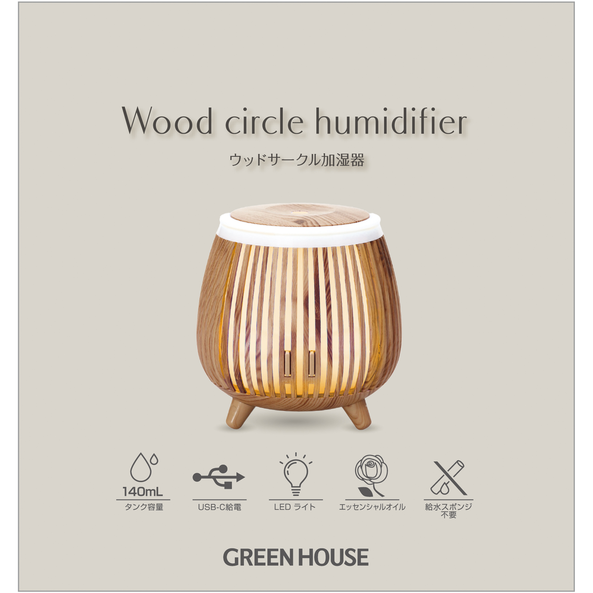 インテリアに映える木目調で、エッセンシャルオイルを入れてアロマディフューザーとしても使用できます。